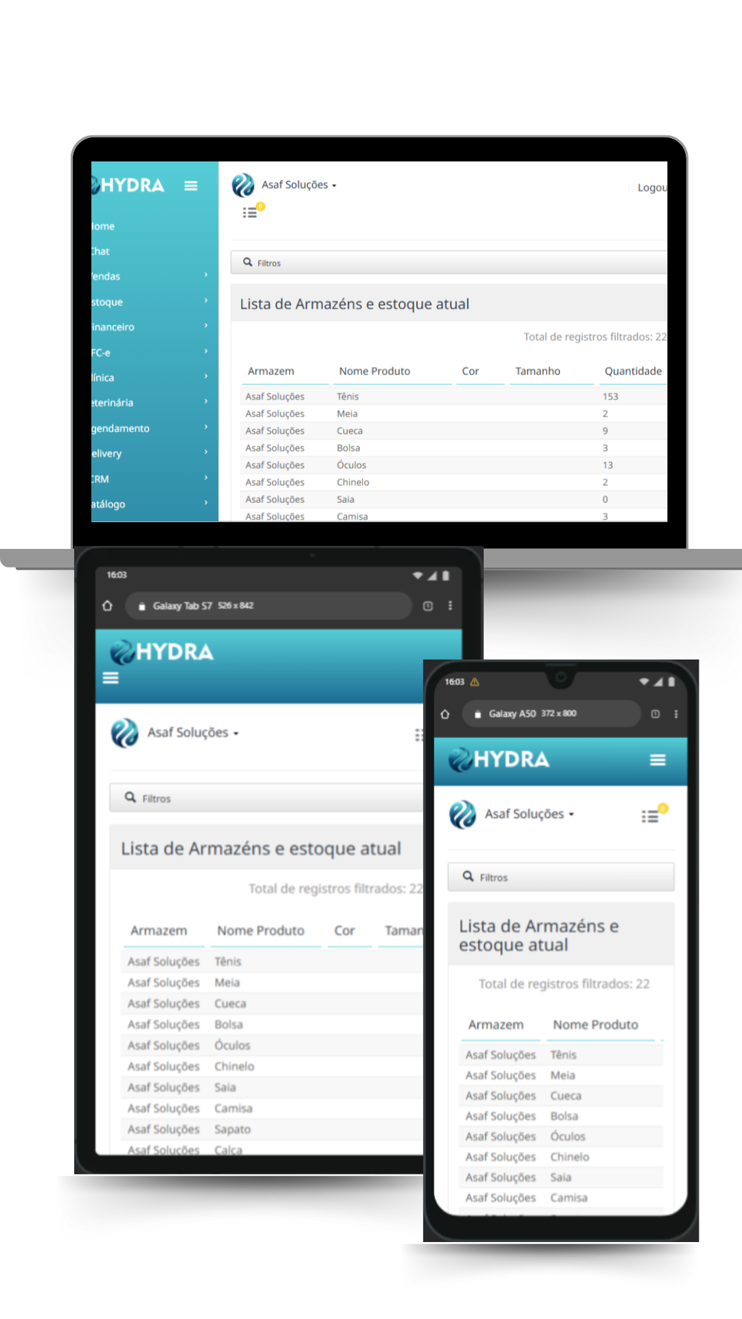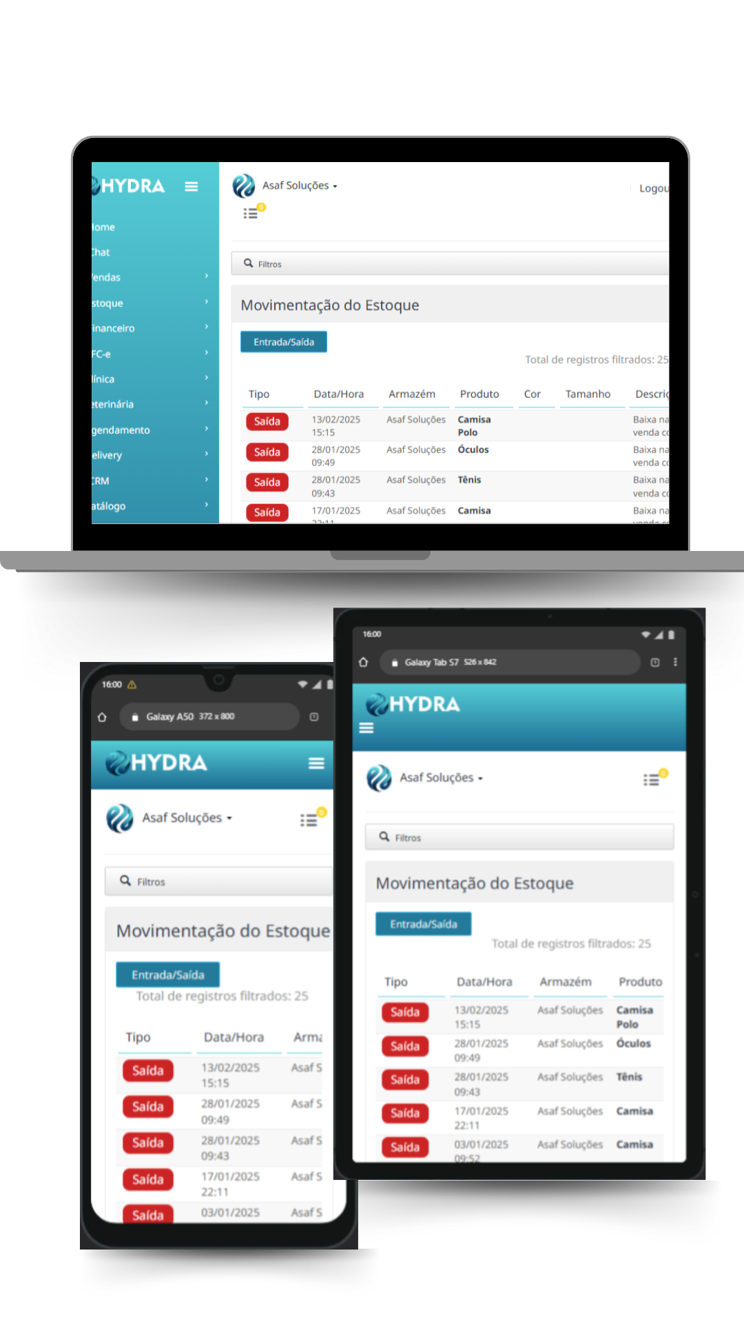 Quando usado em conjunto com o módulo de vendas, permite baixa automática de estoque após a realização de vendas.