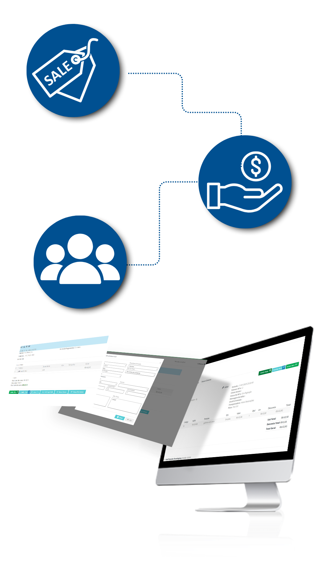 Conexão direta com módulos de estoque e financeiro, garantindo um fluxo de trabalho sem interrupções.Emissão de notas fiscais diretamente pela plataforma.